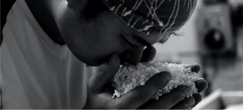 現在、石鎚酒造では長男の浩専務(酒母、もろみ管理)、次男の稔製造部長(原料処理、麹屋)が中心に家族4人が一丸となり酒つくりが行われています。(父親である社長が釜屋、長男夫人の弥生さんが酵母培養を担当。ちなみに弥生さんは浩専務とは東京農大時代の同級生。)